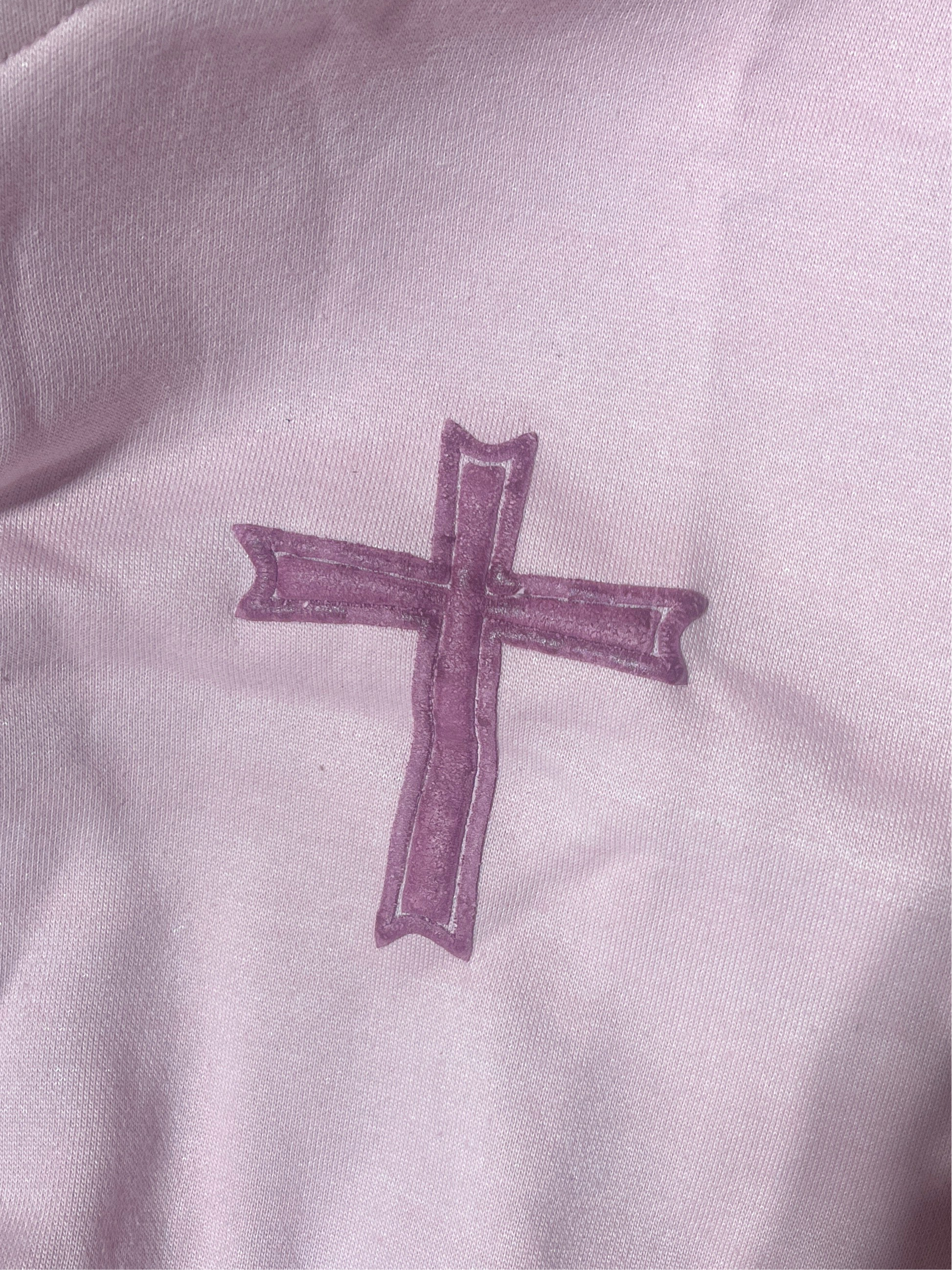 This piece comes from our "Jesus Is The Way"Hoodie— it has a slight mess-up on the front cross design that makes the hoodie look a little less crisp than usual but the message is still completely legible and carries the same power to spread the Gospel everywhere you go!